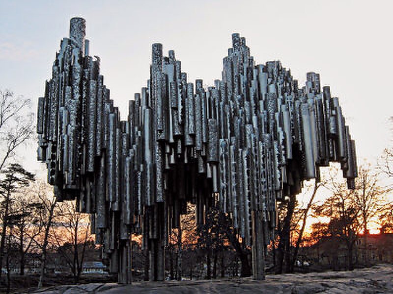Monumento construído no parque sibelius em helsínquia e constituído por um conjunto de 600 tubos de aço inoxidável que faz ressoar o canto dos pássaros na.