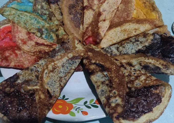 Resep crepes sajian sedap ini menggunakan isian meses cokelat dan keju.